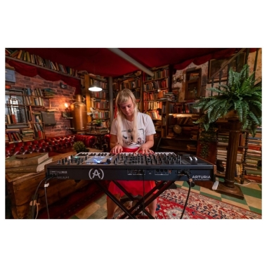 Arturia PolyBrute es un sintetizador analógico de 6 voces, basado en una tecnología y un sonido premiados para ofrecer la síntesis polifónica que estabas esperando. PolyBrute tiene una arquitectura de morphing expansiva y un sólido expresivo rango de 61 teclas que llevará tu sonido donde ningún sintetizador ha llegado antes. El panel de PolyBrute dispone de Knobs y botones para ofrecer una satisfacción inmediata del control táctil en tiempo real sobre todo su dominio analógico. Cada voz puramente analógica, es una herramienta de potencia sónica repleta de funciones que incluye dos VCO con forma de onda brute altamente versátiles, un generador de ruido de espectro completo, un filtro multimodo Steiner rediseñado, un ladder filter de paso bajo personalizado, 3 LFO, 3 generadores de envolvente y más. Todo ello se reúnen en la Matriz para ofrecerte una flexibilidad de parcheomás común de los modulares. Utiliza las 6 voces de PolyBrute polifónicamente o en divisiones y capas y apílalas en modo Unison cuando quieras conseguir un sonido unificado. La suma total es una paleta interminable de sonidos que van desde la belleza a la bestia. Las ruedas de tono y multifunción de gran sensibilidad proporcionan una expresividad familiar, con la flexibilidad de la asignación de parámetros. Incluso hay una banda sensible al tacto asignable encima del teclado, lista para que puedas deslizarte y tocar. Podría decirse que el corazón de esta expresiva capacidad de ejecución es el touchpad tridimensional Morphée. Esta revolucionaria característica ofrece un control de 3 ejes sobre el patch morphing, la aleatoriedad de secuencias/arpegiadores, o hasta 32 modulaciones Matrix asignadas por eje - añadiendo un toque humano único. PolyBrute está cargado con funciones de modulación expansivas. Dí no a las líneas de bajo estáticas y a las voces de acordes monótonos usa 3 LFOs y 3 Generadores de envolvente para inyectar movimiento orgánico y dinámica como nunca antes. Dispones de acceso instantáneo a 768 presets. Sin menús, sin esperas, como todo lo demás en PolyBrute. La Matrix es el cerebro digital del corazón analógico de PolyBrute una interfaz flexible y práctica con múltiples funciones que pueden adaptarse a tus necesidades de interpretación, grabación o composición. En el modo Mods, la cuadrícula de botones de Matrix es un patchbay digital que te permite enrutar fácilmente cualquiera de tus fuentes de modulación y controladores para influir en casi cualquier parámetro que se te ocurra. Con 64 conexiones y hasta 32 destinos de modulación, estás totalmente capacitado para vivir la magia de un verdadero sintetizador. En el modo secuenciador, Matrix se convierte en una interfaz visual que presenta todo lo necesario para crear secuencias polifónicas, arpegios e híbridos pioneros. Además de las notas, También puedes grabar y reproducir los cambios de los parámetros del sintetizador, transformando el secuenciador en una fuente de modulación totalmente nueva para llenar de energía tus pistas y actuaciones. PolyBrute pone toda esa potencia analógica al frente con knobs y botones dedicados, haciendo que la búsqueda y memorización del menú sean cosa del pasado. Casi todo lo que tocas También genera MIDI, para que puedas capturar cada movimiento como parte de tus producciones DAW.