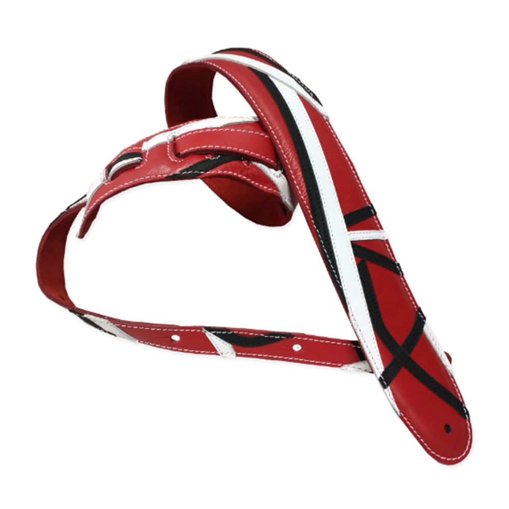 El modelo JUMP es un diseño vibrante y llamativo que rinde homenaje a la famosa guitarra Frankenstrat utilizada por Van Halen. Cuenta con el característico patrón de rayas rojas, blancas y negras tan distintiva de la guitarra de Van Halen.