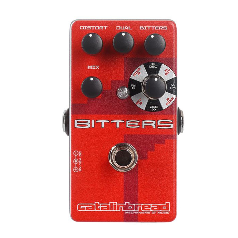 Decimator, Bitcrusher, Frequency Modulation y Ring Modulation. Los 3 efectos se ejecutan en serie, pero se puede invertir el orden de modo que Bitters sea el primero en crear el caos sónico. Al igual que el original, el Bitters funciona igual de bien con sintetizadores, cajas de ritmos y estaciones de trabajo de audio digital que con guitarras eléctricas y bajos. Y dado que el original no tenía controles de mezcla, Bitters es infinitamente más funcional de lo que nunca fue el original.