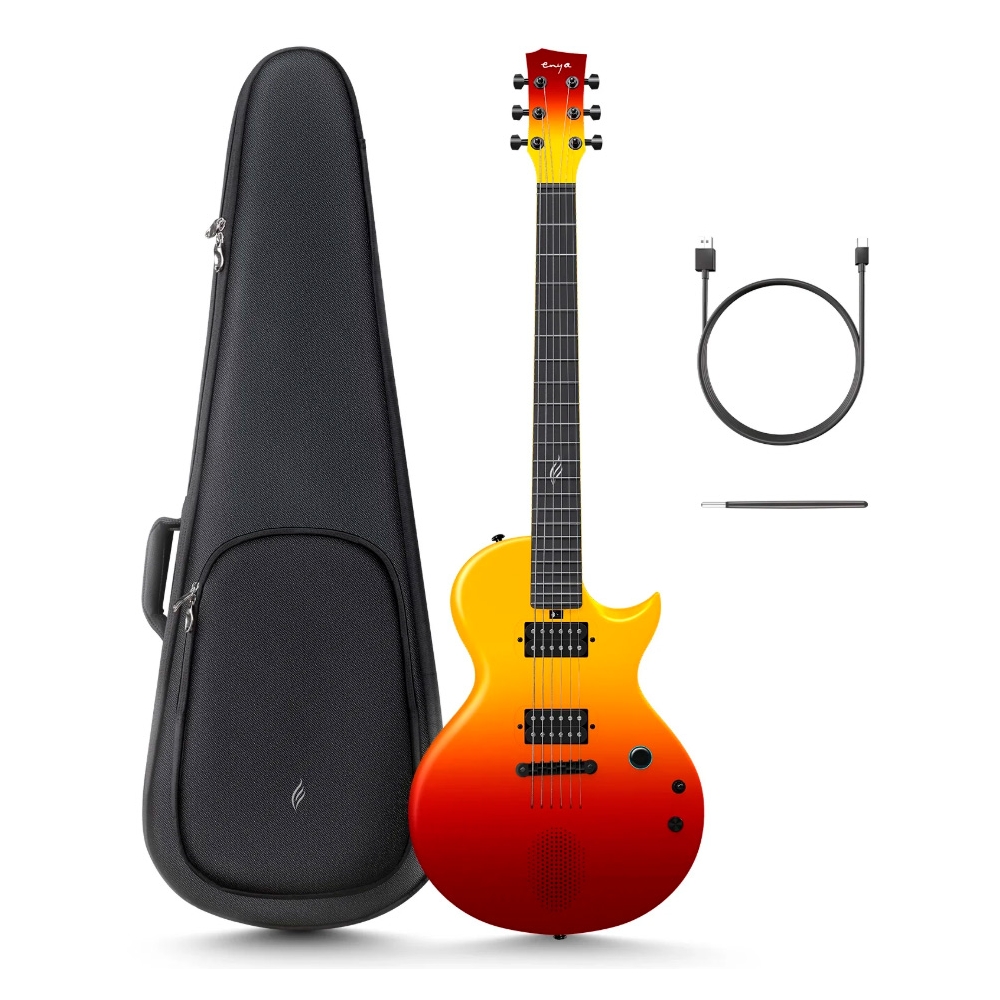 Guitarra eléctrica inteligente con amplificador inalámbrico integrado de 10W. Efectos incorporados. Cuerpo ligero y con rebajes. Perfil de mástil asimétrico, traste cero, trastes de punta redondeada. Carga USB y salida de auriculares. El conector de carga también actúa para grabación en un dispositivo externo a través de la función OTG. Conector de Jack de 1/4" para conexión a amplificador externo. Conectividad bluetooth con la app de Enya Music. 4 presets integrados personalizables: Clean, Overdrive, Crunch y Lead.