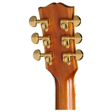 Los toques elegantes incluyen incrustaciones de paralelogramo dividido de nácar, un golpeador Hummingbird grabado en oro y afinadores Grover gold en un clavijero clásico de estilo Gibson. La pastilla integrada L.R. Baggs VTC Bronze garantiza un tono claro y natural cuando está conectada, mientras que el estuche Epiphone Protector Ultralite incluido proporciona una protección ligera pero duradera para viajes y almacenamiento.
