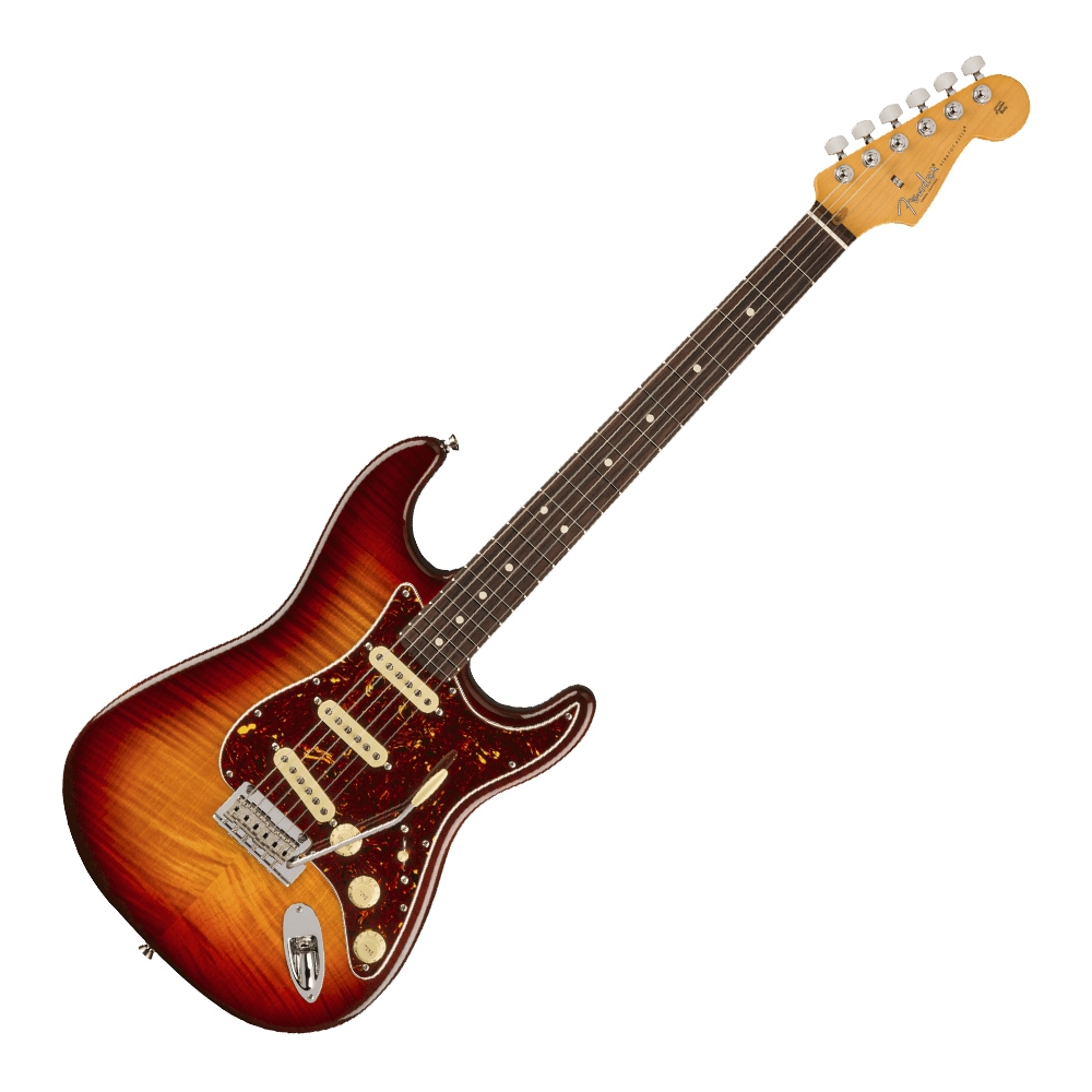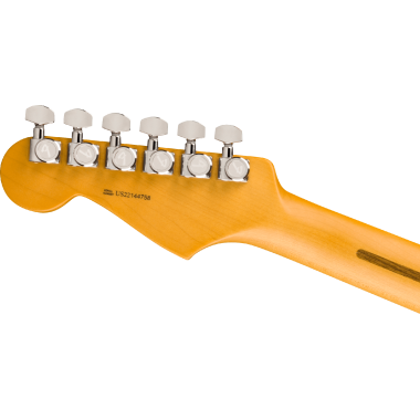 Con la American Professional II Stratocaster 70 Aniversario los músicos llevarán su interpretación a un nuevo nivel. El cuerpo de aliso, la impresionante tapa de arce flameado y el acabado Comet Burst, dotan a la guitarra de elegancia y clase. Este modelo equipa las pastillas single-coil Strat® V-Mod II 70 Aniversario, con el objetivo de ofrecer sonidos que respeten al máximo la dinámica y expresividad de los guitarristas. El mástil en forma de "Deep C" tiene los bordes del diapasón redondeados y cuenta con un acabado satinado "Super-Natural" y un nuevo talón para conseguir un excelente nivel de comodidad, así como un fácil acceso a los últimos trastes. El puente mejorado con sistema de trémolo de 2 puntos y bloque de acero, aumenta el sustain, la claridad y el característico brillo de la Strat en las notas más agudas. Los clavijeros Deluxe con bloqueo garantizan la máxima estabilidad de afinación. La American Pro II Stratocaster ofrece a los músicos una familiaridad instantánea y una increíble versatilidad sonora que convierten al modelo en un nuevo estándar entre los instrumentos profesionales. El estuche Inca Silver ABS con el interior adaptado a la forma de la guitarra, proporciona una protección fiable para esta Stratocaster tan especial.