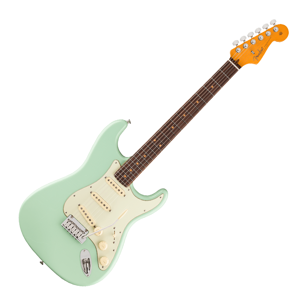 En su interior, las pastillas Pure Vintage '61 Strat® ofrecen los tonos clásicos de Fender, desde limpios brillantes hasta solos llenos de expresión. El hardware de alto rendimiento incorpora un trémolo sincronizado American Ultra de 2 puntos, diseñado con precisión, sellos de bloque de acero inoxidable pulido, bloque de acero laminado en frío y clavijas de bloqueo deluxe para cambiar cuerdas rápidamente y mantener la afinación perfecta.