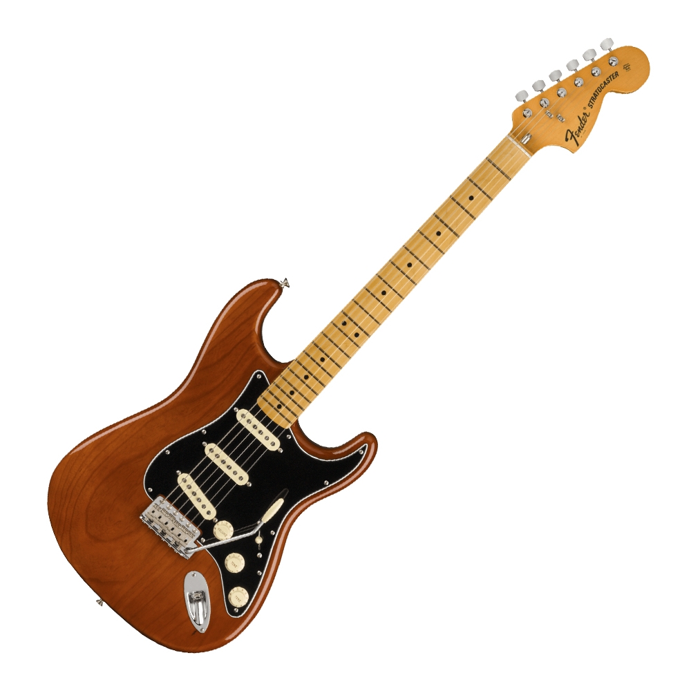La serie Fender American Vintage II presenta una versión notablemente precisa de los diseños revolucionarios que alteraron el curso de la historia musical. Construidos con cuerpos, mástiles y herrajes precisos de la época, acabados de primera calidad y pastillas específicas del año con una sonoridad meticulosa, cada instrumento captura la esencia de la auténtica artesanía y el tono de Fender. En 1973, las señales de diseño de CBS, ahora clásicas, se habían convertido en especificaciones estándar y eran ampliamente utilizadas por músicos de rock, funk, fusión y progresivo de todo el mundo. Los programas de televisión semanales nocturnos de música como Don Kirshners Rock Concert, In concert y Midnight Special proporcionaron más exposición que nunca para los instrumentos Fender, consolidando aún más el dominio de la Stratocaster como un fenómeno de la cultura pop. La American Vintage II 1973 Stratocaster exuda el espíritu de la época y está equipada con un trío de pastillas de poste escalonadas Pure Vintage 73, un clavijero grande con árboles de cuerdas dobles, una conveniente tuerca de barra de armadura estilo Bullet y un placa de cuello con mecanismo Micro-Tilt. El mástil de arce en forma de C suena como un sueño con un diapasón de palisandro o arce de 7,25 de radio y trastes altos vintage. La guitarra se ofrece en tres colores clásicos sobre fresno: Aged Natural, Lake Placid Blue y Mocha, siendo este último el primer color personalizado en presentar un golpeador negro en una Strat. Las Características adicionales incluyen sintonizadores estampados F de estilo vintage y un trémolo sincronizado con monturas de acero dobladas y bloque de acero laminado en frío. Los instrumentos de la serie American Vintage II son descendientes directos de los Fender originales: diseñados para músicos con una gran apreciación por el tono y la sensación de Fender vintage y construidos con una calidad inigualable, hasta el último tornillo. Estas son las eléctricas Fender en su forma más pura: Fender American Vintage II, el material de las leyendas.
