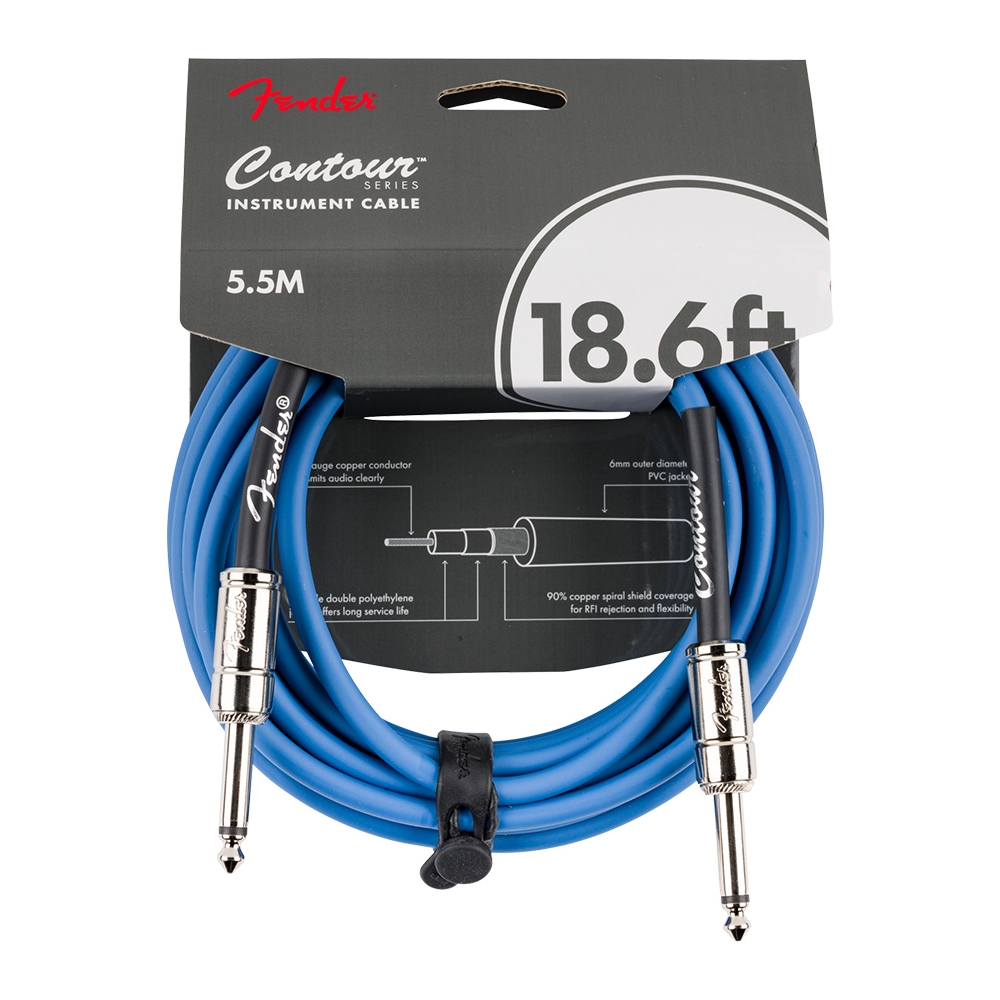 Los cables para instrumentos Fender Contour™ Series combinan el inconfundible estilo Fender con una construcción sólida, que incluye blindaje en espiral y conectores niquelados duraderos, ideales para cualquier entorno musical, ya sea en el escenario o en el estudio.
