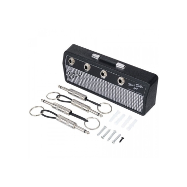 ¡Cuelga tus llaves como una estrella del rock con el Fender® Jack Rack! Viene con un acabado elegante, compuesto por materiales de amplificador reales, 4 llaveros de enchufe de guitarra Fender® y 1 kit de montaje en la pared.
