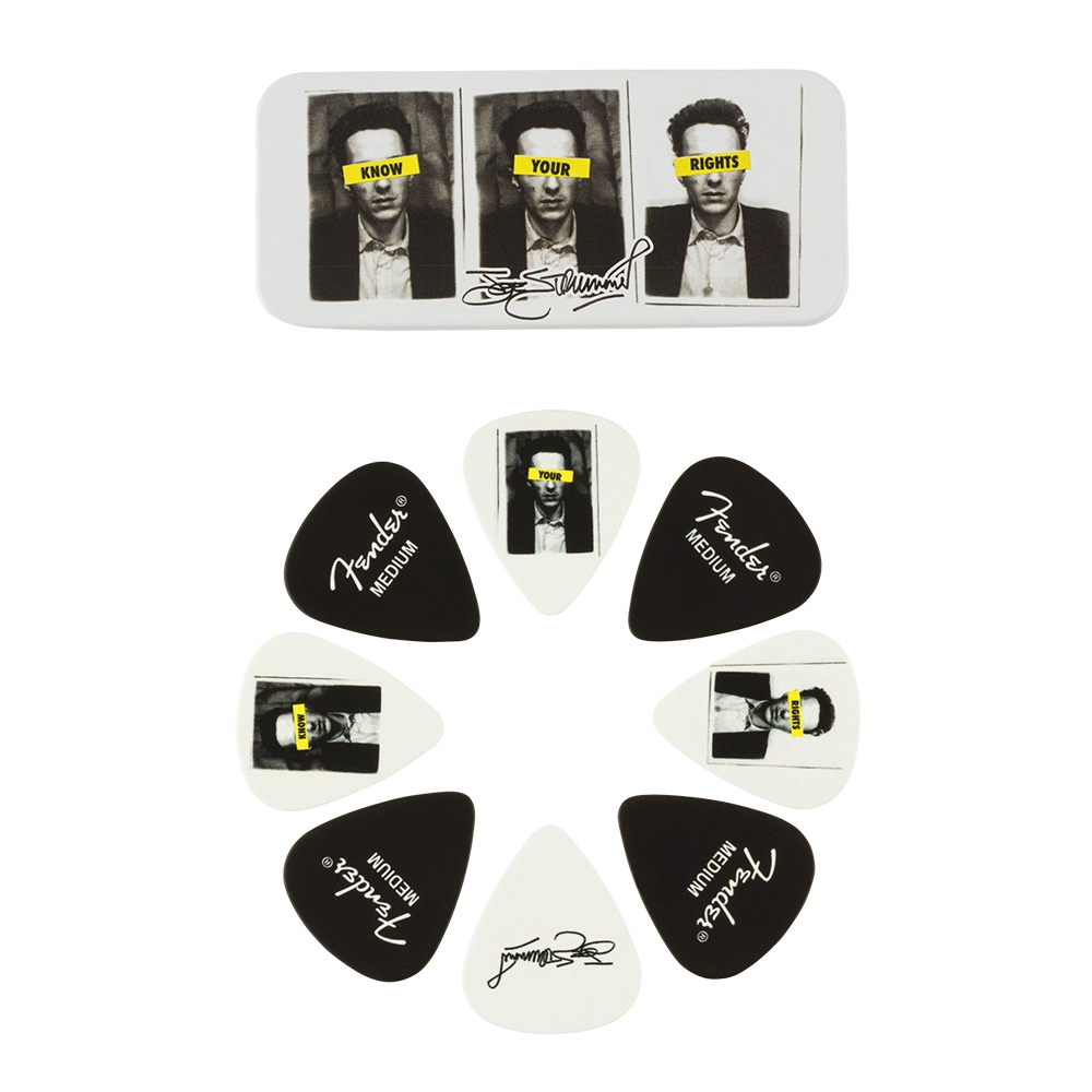 La lata de coleccionista Know Your Rights rinde homenaje a una de las letras más conmovedoras y poderosas de Joe. Reflejando el arte de su nuevo álbum ASSEMBLY, la lata de púas contiene ocho púas medianas de celuloide con imágenes icónicas de la leyenda que te inspirarán a coger tu guitarra y tocar.