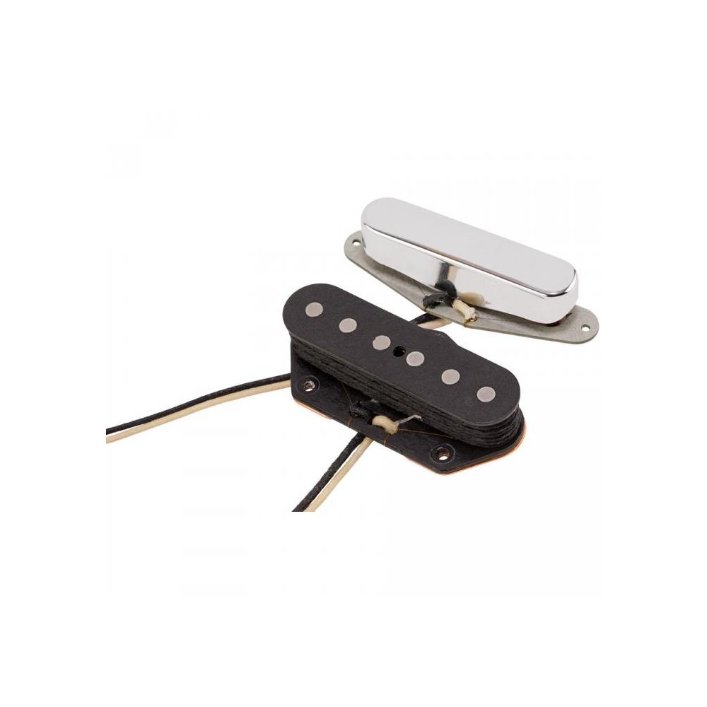 La pastilla del puente utiliza una placa base de cobre para el tono Tele tradicional, junto con imanes de alnico 5 empotrados y alambre Formvar la pastilla del mástil utiliza los mismos imanes de alnico 5 de alta calidad, pero incorpora alambre de esmalte liso. Los imanes de Alnico 5 tienen un sonido más ajustado y concentrado que los imanes de Alnico 3 utilizados en las primeras pastillas Fender, y su ataque rápido y brillante es perfecto para los músicos que usan pedales para dar forma a su tono. Manteniéndose fiel a los materiales utilizados durante la era original de Fender, los cables están envueltos en tela.