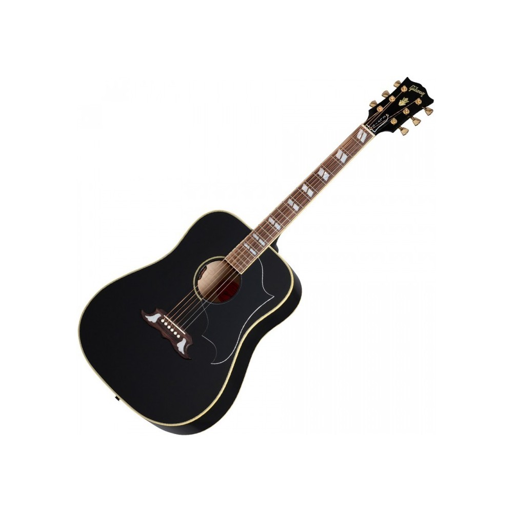 La Gibson Elvis Dove se basa en una Gibson Dove personalizada de 1969 que su padre, Vernon Presley le regaló al Rey del Rock and Roll, y que Elvis tocó en conciertos regularmente desde 1971 hasta 1975, incluso durante el Aloha From televisado por satélite de 1973. Concierto de Hawai. En 1975, Elvis se lo regaló a mitad de una actuación a un asombrado miembro del público en un concierto en Asheville, Carolina del Norte. La Gibson Elvis Dove tiene una tapa de pícea de Sitka maciza, aros y fondo de arce macizo y un mástil de caoba rematado con un diapasón de palisandro. También viene equipado con la electrónica moderna LR Baggs VTC con una pastilla piezoeléctrica debajo del sillín y controles de volumen y tono montados en la boca, lo que lo hace listo para el escenario, directamente desde el estuche rígido incluido.
