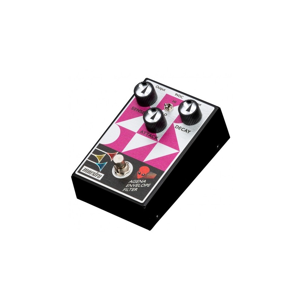 El pedal de filtro de envolvente Maestro Agena está diseñado para facilitar su uso y está diseñado para un control dinámico optimizado. El Agena ofrece dos distintas opciones de frecuencia de filtro para una amplia gama de posibilidades tonales. Musical e inspirador, seguramente traerá el funk. Este todo analógico El pedal cuenta con un interruptor de palanca de modo de dos posiciones para una mayor versatilidad sónica. La configuración del modo LO enfoca el filtro en una frecuencia más baja rango, mientras que el modo HI enfatiza un rango más alto de frecuencias. El diseño de control intuitivo de 3 perillas permite a los usuarios configurar rápidamente el deseado Sense (la sensibilidad de la envolvente y la respuesta a su ataque de punteo), controle el ataque (qué tan rápido aumenta o se abre el filtro) y ajuste el decaimiento y cuánto tiempo permanece el filtro en la posición abierta. El interruptor de pie de bypass verdadero activa las luces LED en las cornetas en el Maestro logotipo cuando está activado, para que siempre sepa cuándo está activo el efecto.
