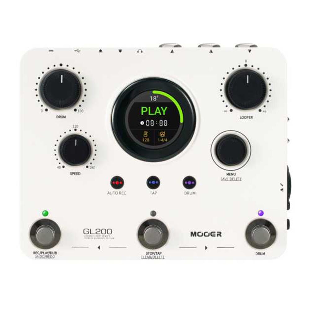 MOOER ha liderado la innovación en el ámbito de los bucles creativos desde sus inicios con el Micro Looper y Micro Drummer, consolidándose con la serie Groove Loop. Basándose en el éxito del modelo GL100, la nueva estación de Looping y batería GL200 representa la evolución natural de esta línea, ofreciendo un rendimiento mejorado y mayor versatilidad.
