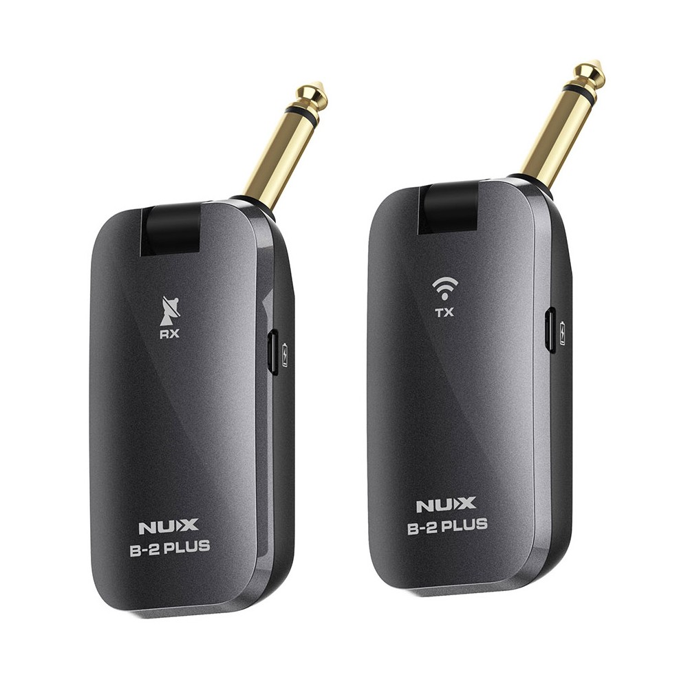 Sistema inalámbrico para guitarra NUX B-2 Plus. Transmisor de audio a 32 bits/44.1 Khz y un alcance de 15 m. con una latencia de 5 ms. 4 canales para poder operar a la vez con distintas unidades. Frecuencia 2.4 GHz para evitar interferencias. Diseño que se adapta a todo tipo de guitarras. Encaja el trasnmisor y receptor para evitar perdidas y facilitar su almacenamiento. Función de auto apagado para ahorrar batería.