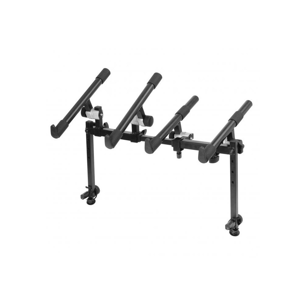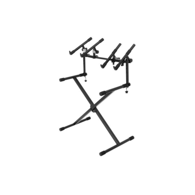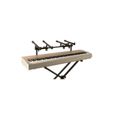 Soporte para segundo teclado On Stage Stand KSA8000 Universal Deluxe. Este soporte de teclado adicional se adapta a cualquier soporte de teclado, ya sea con un diámetro de 1 o 30 mm tanto de tubos redondos como cuadrados. Dispone de 2 juegos de brazos de 36cm de longitud que pueden alojar un segundo teclado o una combinación de ordenadores portátiles u otros equipos de DJ. Los brazos cuentan con anchura y ajustes de ángulo independientes, con una capacidad de carga de 30 kg. El diseño Posi-Lok se ajusta y cierra los brazos de soporte en incrementos de 10º, mientras que la barra estabilizadora telescópica se ajusta a la anchura de cualquier soporte desde 45cm hasta de 31 o 79cm. Incluye 2 tapas de extremos estilo de corcho.