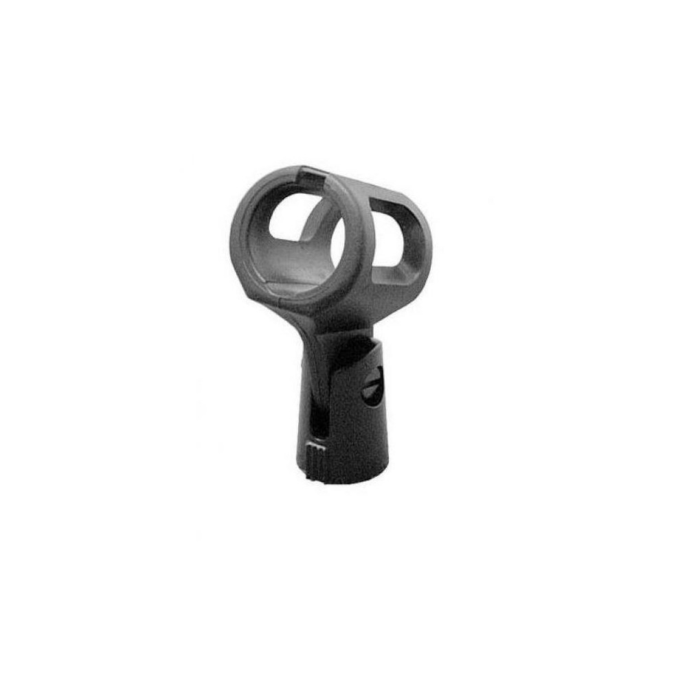 Pinza de micro Onstage MY110. Pinza de goma para micrófonos inalámbricos de 5/8 con rosca hembra de paso 27 insertada en base de plástico. Adaptable a soportes de micro europeos de 3/8.