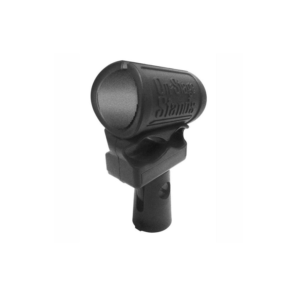 Pinza de micro On Stage MY325 Dynamic Shock Mount Mic Clip.Pinza de goma con sistema de amortiguación que reduce las vibraciones producidas por los graves y las vibraciones del suelo.Con un diámetro de 25mm, se ajusta a la mayoría de micrófonos dinámicos de mano.Rosca estándar hembra de 5/8-27 insertada en una base plástica de alta resistencia.