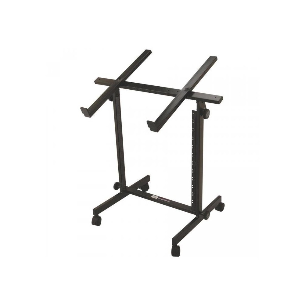 Este soporte de estudio o para pequeños grupos en el escenario es la solución perfecta para el músico de hoy. Con un diseño versátil, este soporte completamente de acero de alta resistencia cuenta con una plataforma ajustable de inclinación superior, rack integrado de equipos externos y un conjunto de ruedas de bloqueo resistentes. Esta base está diseñada para facilitar el acceso. Las ruedas de bloqueo permiten un fácil acceso a las conexiones y la flexibilidad de mover el soporte en la posición deseada en el estudio, en el escenario o para su almacenamiento. El rack integrado de 10 espacios de 19 es ideal para la disposición de equipos externos, amplificadores o procesadores de señal a poca distancia de la mesa de mezclas. Soporta un peso de hasta 68kg. Altura ajustable de 72 a 78cm. Anchura de base: 51x45cm.