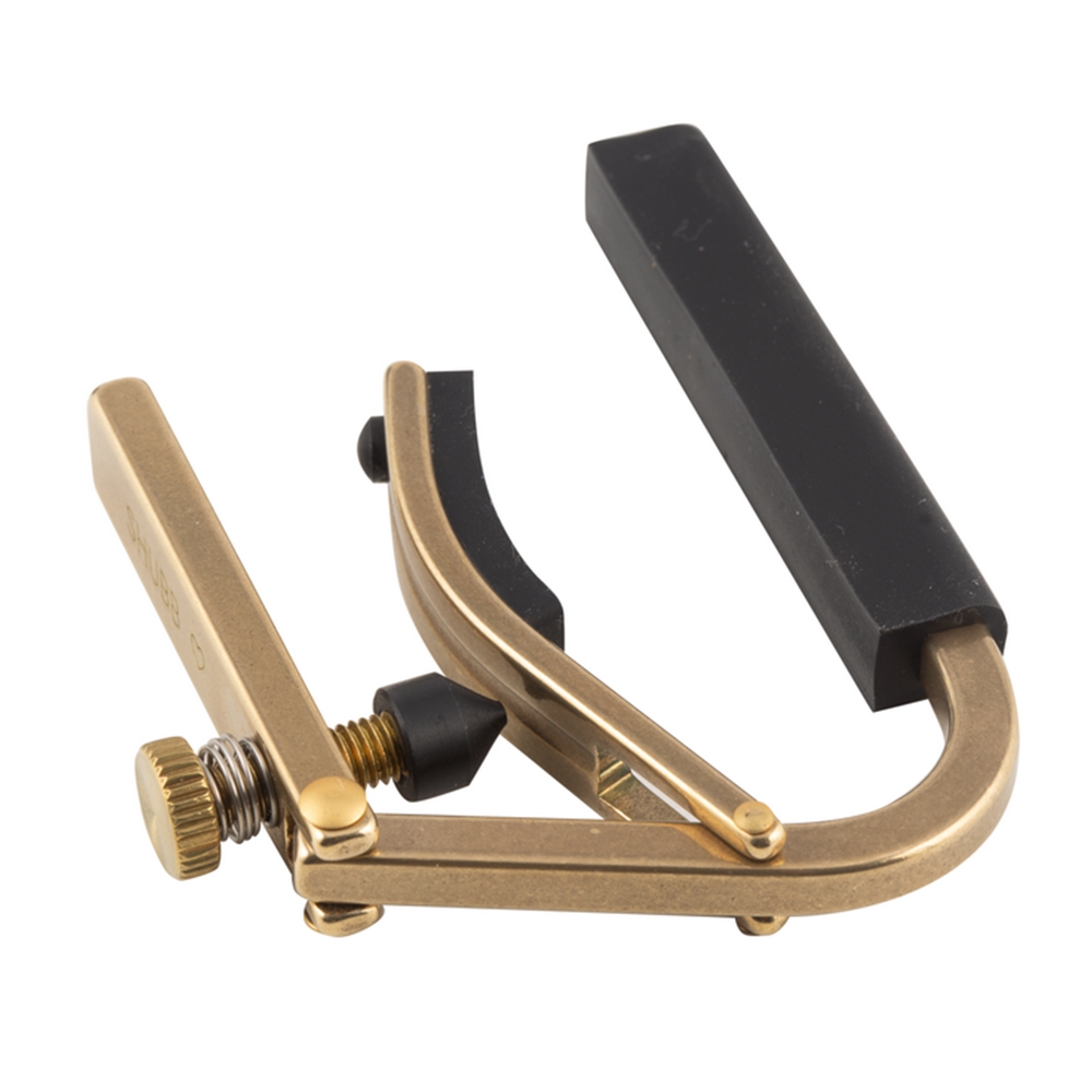 Hoy en día sólo se fabrican capodastres de latón puro y sin tratar bajo la etiqueta Shubb Original. Son una buena elección para los amantes de las formas clásicas, no sólo por su diseño clásico, inalterado desde hace 30 años, sino también por las propiedades del latón, que en esta forma se oscurece con el tiempo y el capodastre adquiere así un bello aspecto vintage. Es un gran complemento visual para los instrumentos equipados con herrajes dorados.