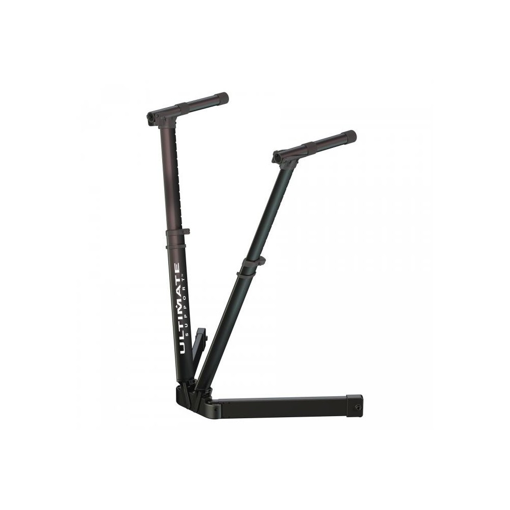 Soporte de teclado Ultimate VS-80B. El soporte VS-80B, dentro de la serie V-Stand de Ultimate, representa un notable avance comparado con otros soportes disponibles en el mercado gracias a su sistema de regulación de altura, la comodidad de transporte una vez se ha plegado la unidad y una extrema facilidad en el montaje y demontaje. Debido a su espectacular diseño, se pueden ocultar los cables de los teclados y además en la base existe un amplio espacio para la ubicación de diversos tipos de pedaleras. Ajuste en altura (656 mm - 1035 mm), ajuste en anchura (483 mm - 609 mm), máxima carga soportada 68 kg, Dimensiones en uso: 965 mm x 610 mm, Fdimensiones plegado: 724 mm x 241 mm x 152 mm, Peso: 8,28 kg.