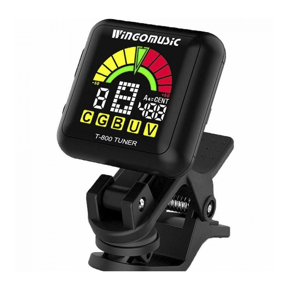 Afinador Wingo T-300 Cromático para guitarra, bajo, violín, ukelele y banjos. Calibración A4: 440 Hz. Giro de 360º para mejor visualización. Muelle de acero de alta calidad para una mayor durabilidad. Pads de silicona para proteger tu instrumento. Incluye cable de alimentación 3v (CR2032) Color: Negro