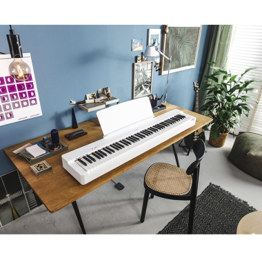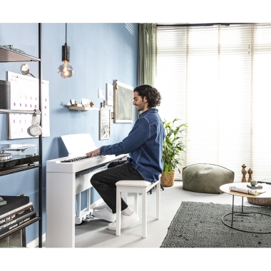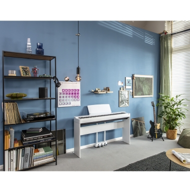 Un problema que afecta a los pianistas es que el piano tradicional suele ser demasiado grande para caber en una habitación. Para agregar a esto, los pianistas no pueden llevar sus instrumentos con ellos. El P-225 proporciona una solución brillante a estos problemas. El elegante diseño de este instrumento combina bien con cualquier habitación y está disponible en variaciones de color blanco o negro para adaptarse al estado de ánimo. Con el estuche blando opcional, puede llevar este instrumento al estudio, a presentaciones en vivo o de viaje, siempre que lo necesite.