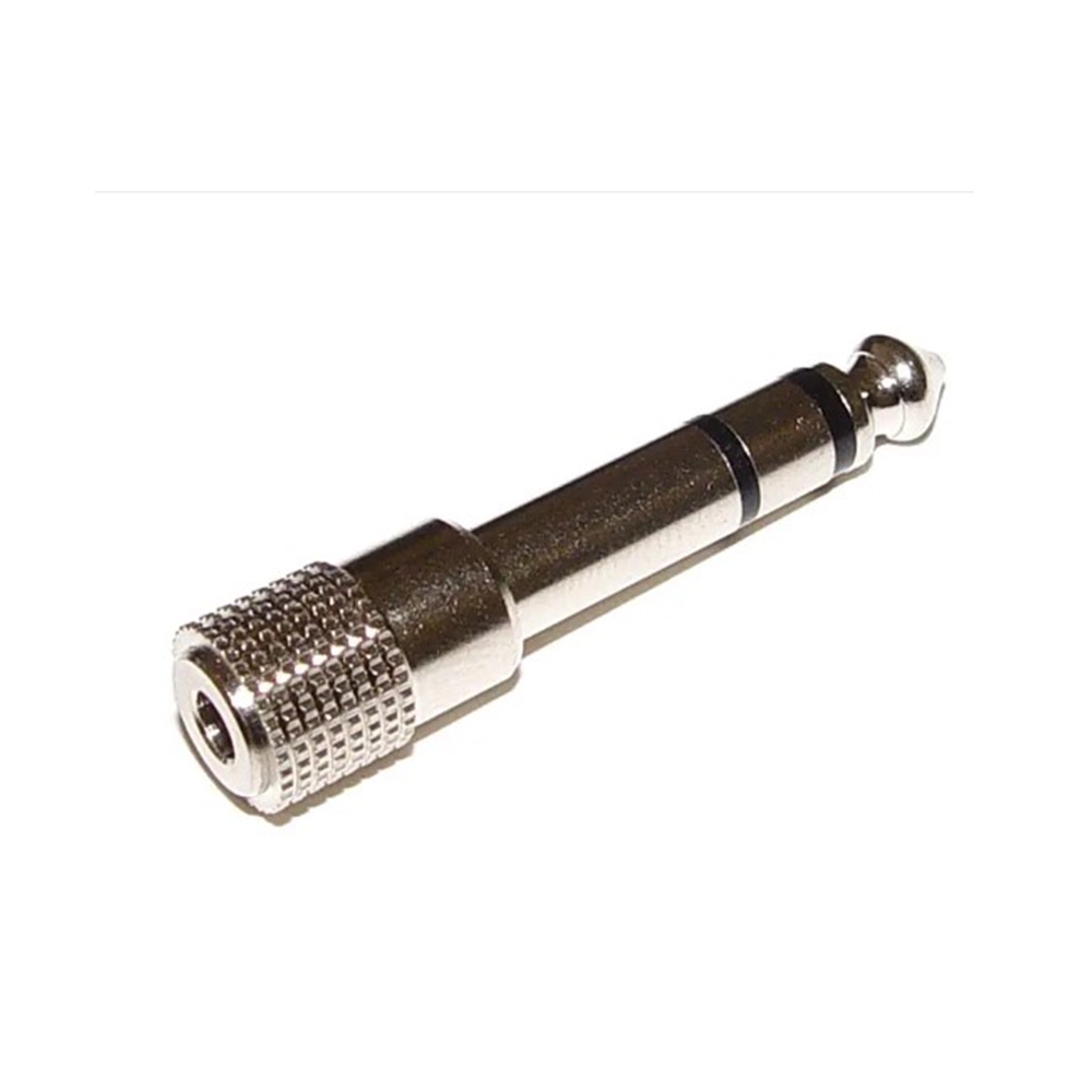 Adaptador Jack cromado de 3,5 mm a 6,3mm.